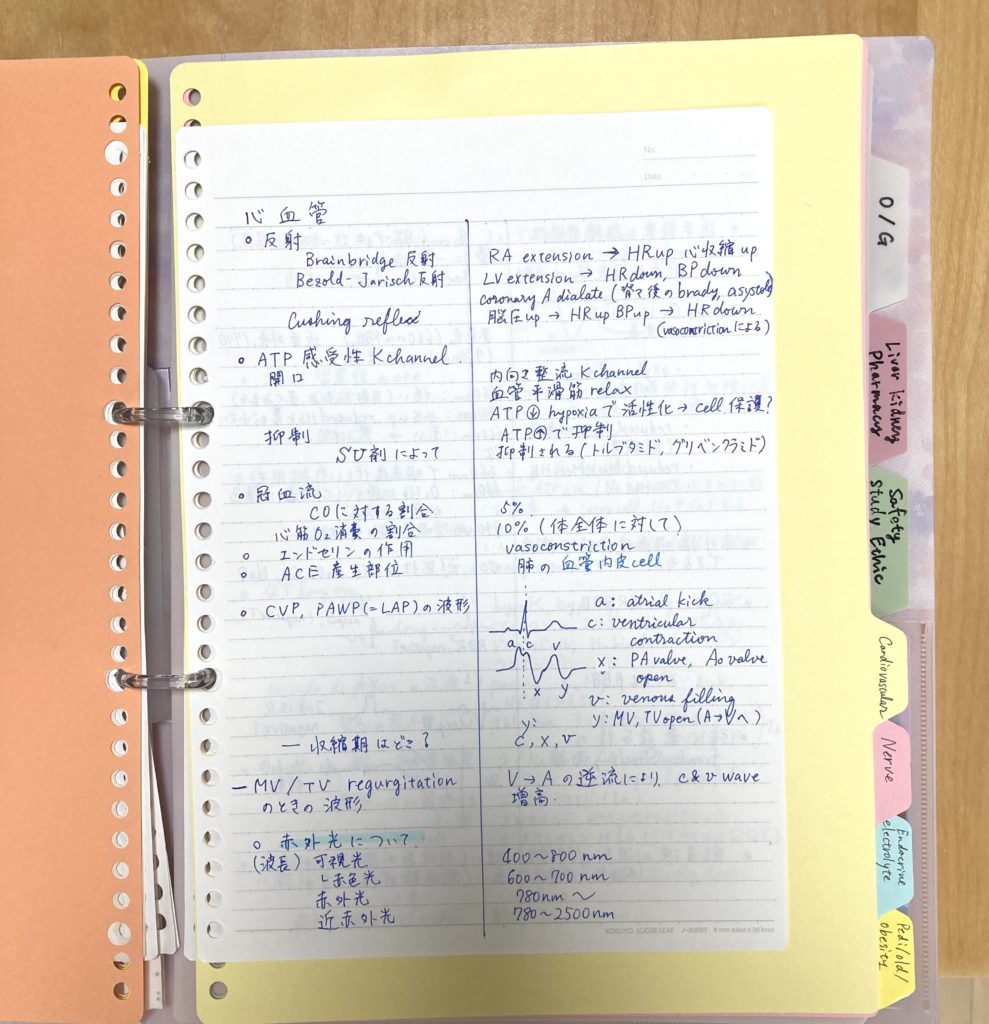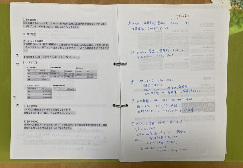 - STEP1過去問の印刷麻酔科学会で公開されている過去問を印刷して、バインダーの左側に綴じる